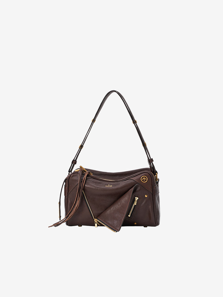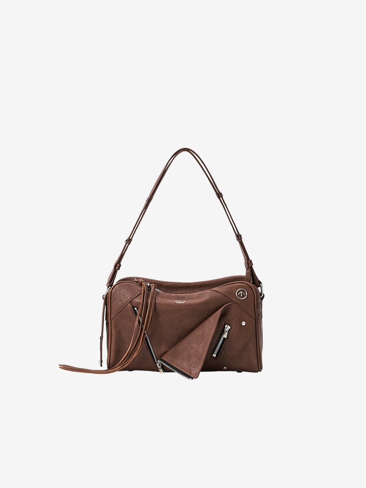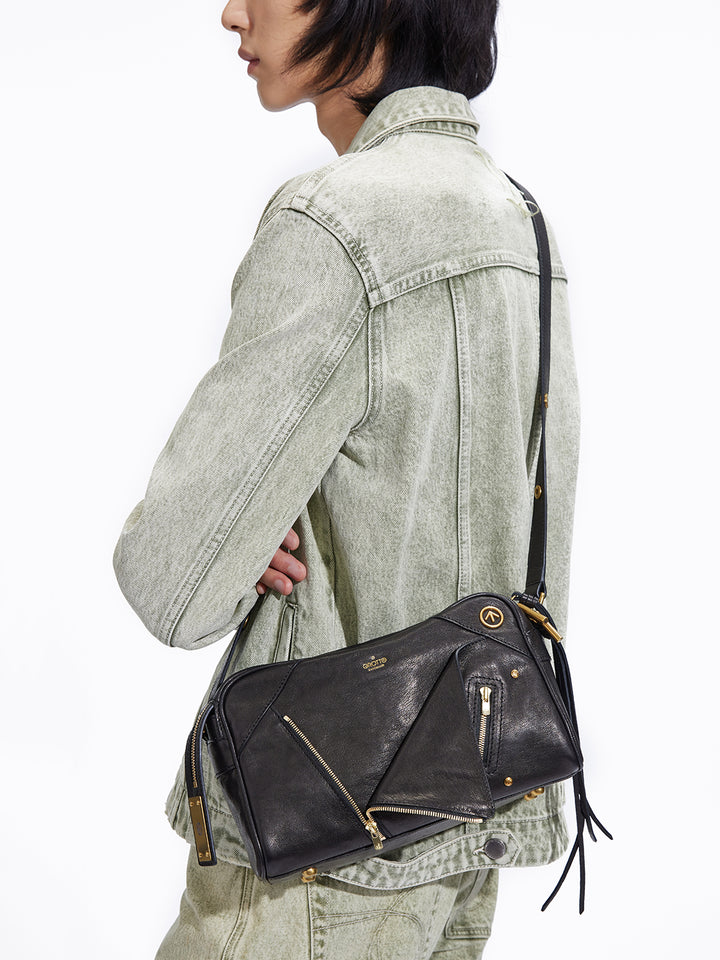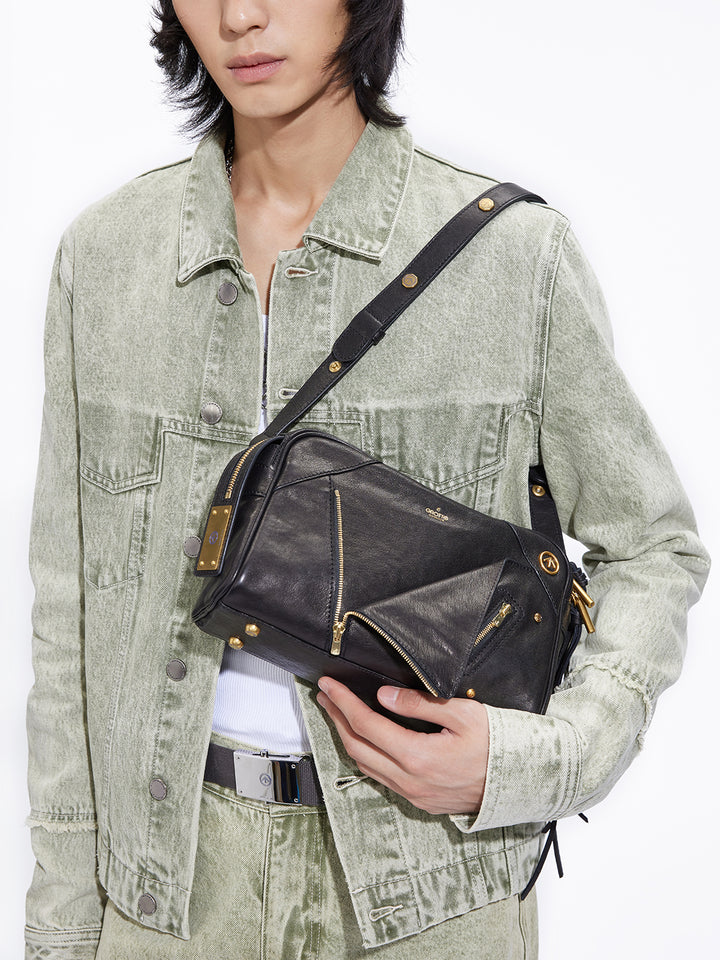 这款服装以解构主义的翻领为灵感,在其独特的风格中体现了“柔软与可重构”的叛逆精神。 这款包袋采用宽松舒适的矩形设计,在棱角分明的轮廓中融入了一丝柔和之美。多口袋结构则满足日常出行和收纳的各种需求。